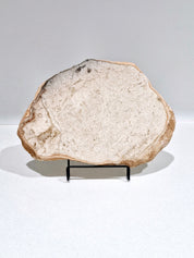 Delicate cream layers intertwined with rich caramel swirls and hints of charcoal, all beautifully enhanced by a stunning live edge. This larger piece is a combination of flowing swirls and layered tones, each piece uniquely captivating.