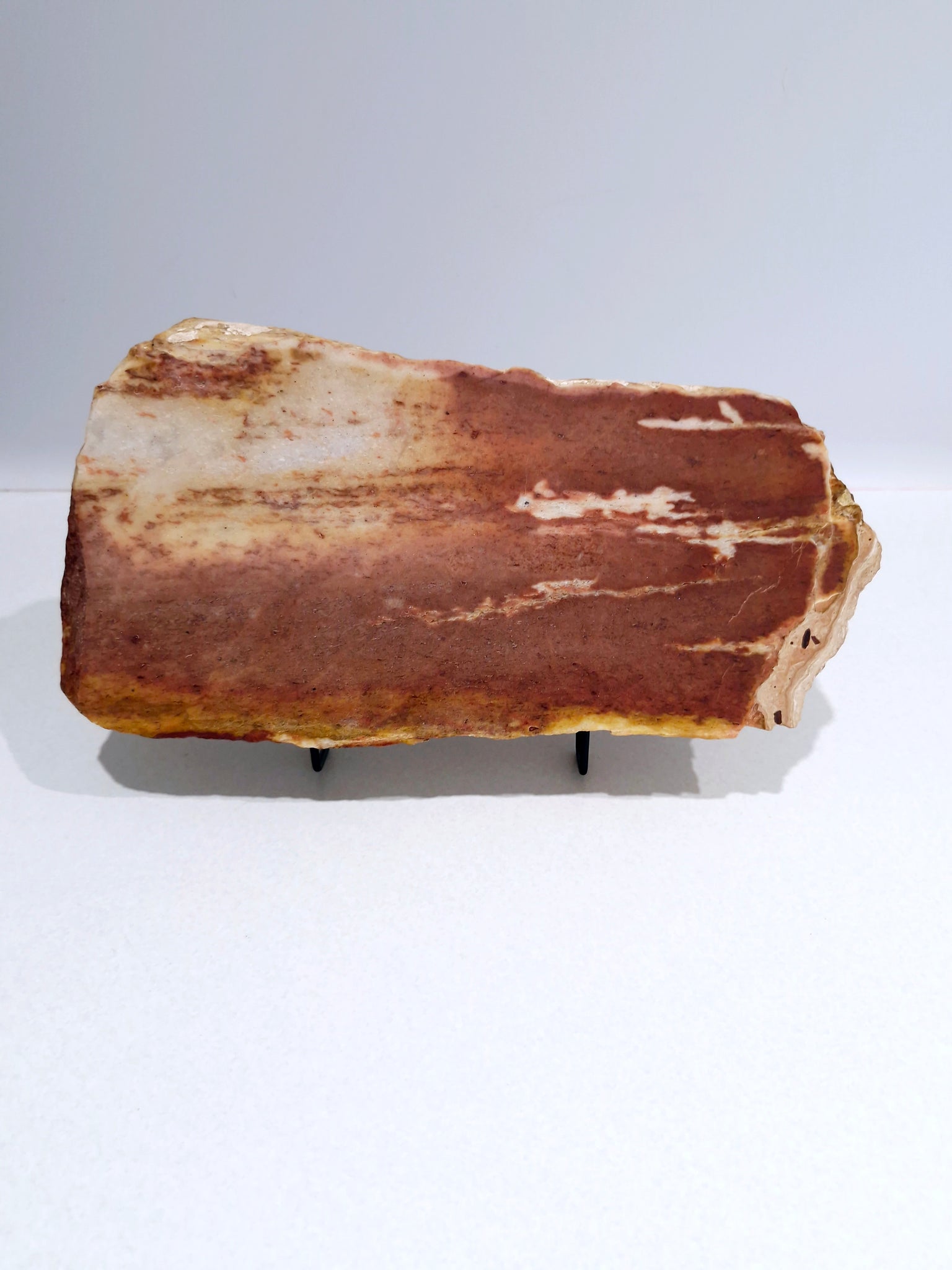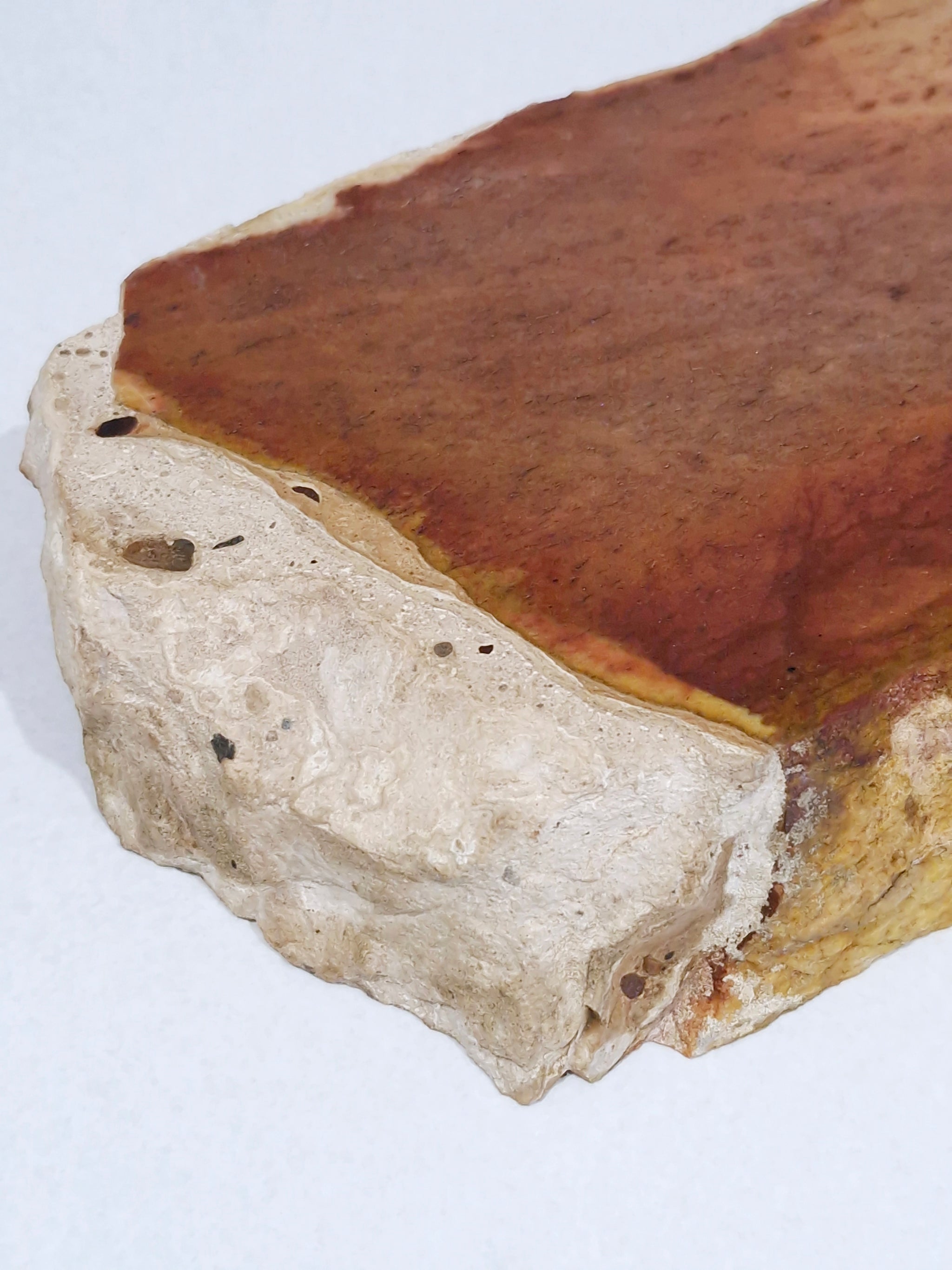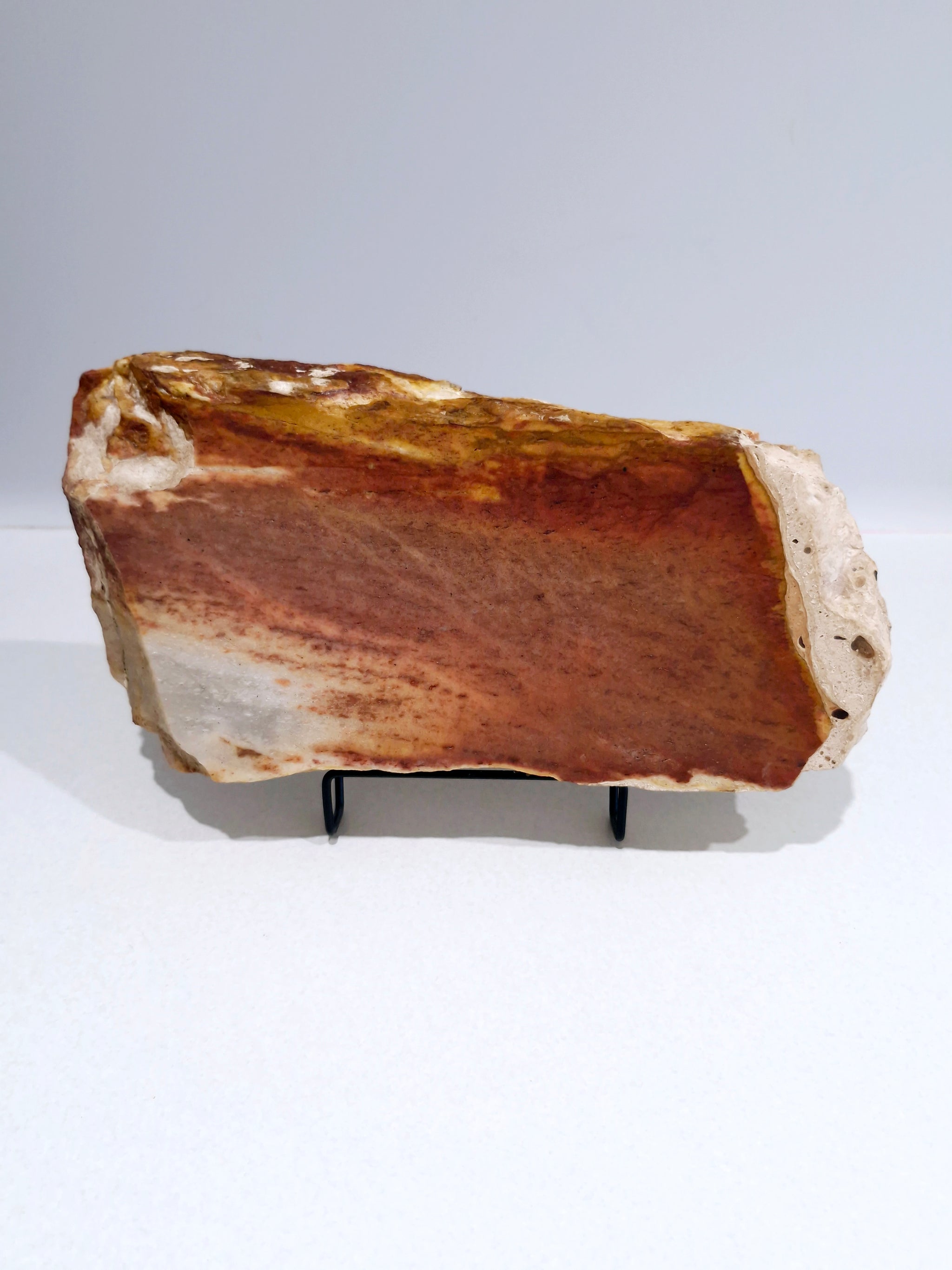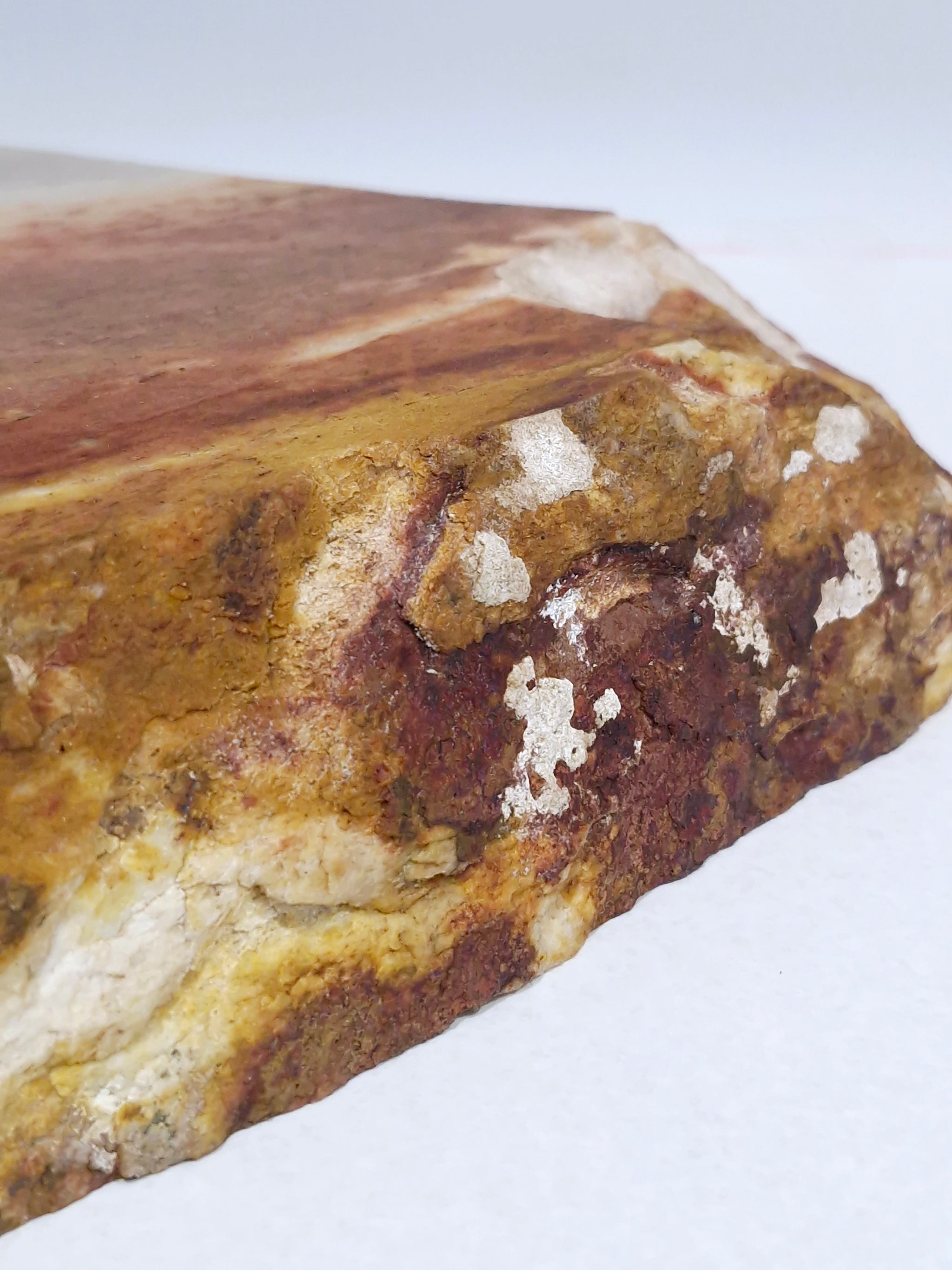 A strong, large, heavy and striking piece with a stunning red base, warm browns and a creamy outer quartz edge.