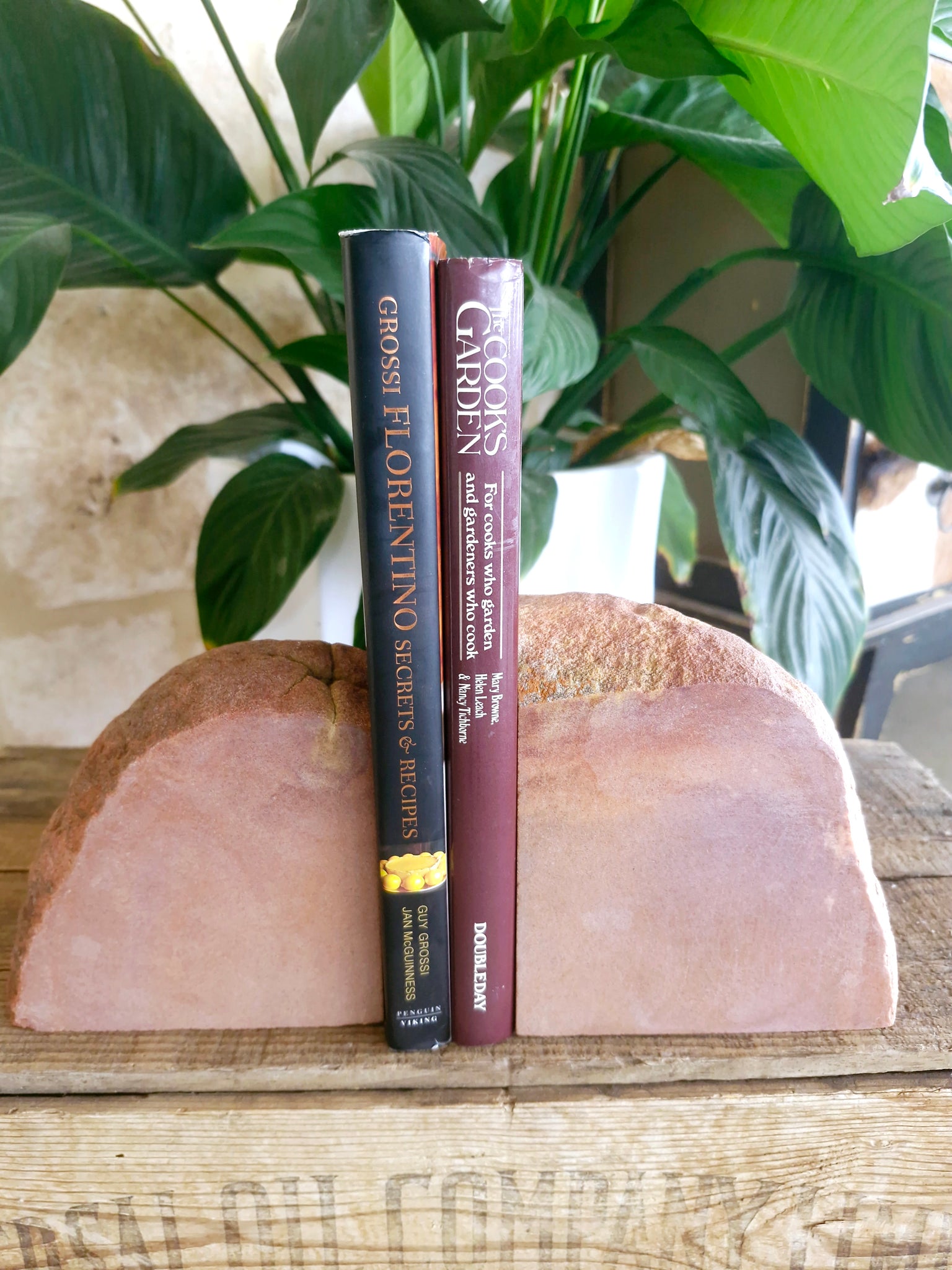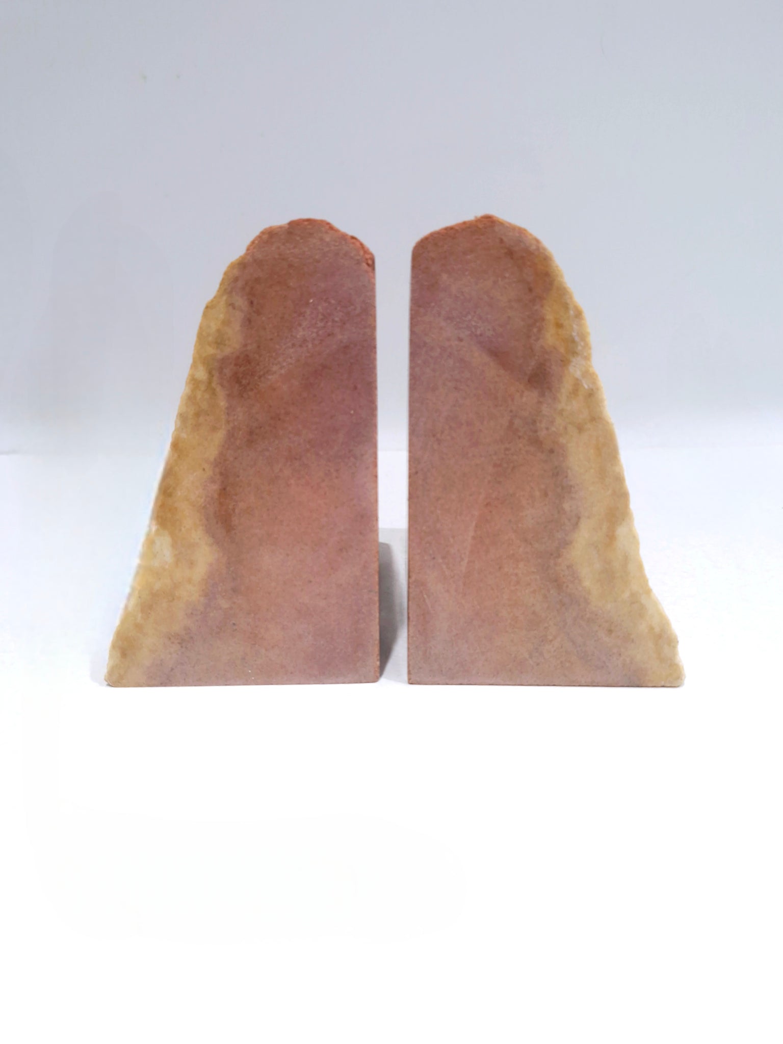 A refined blend of rusty red and gleaming gold, this smooth, distinctive set of bookends brings a touch of elegance to any room.